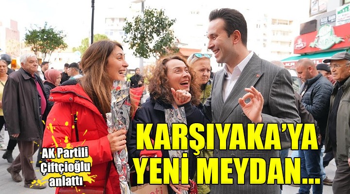 Karşıyaka’ya yakışır yeni bir meydanı oluşturacaklarını belirten Çiftçioğlu, “Karşıyaka’nın kalbinin attığı, çarşının çıkışında bulunan İZBAN İstasyonu ile Latife Hanım Köşkü, Alibey Hamamı ve devlet kurumlarını içine alan toplam 18 bin metrekarelik bölgede Karşıyaka’ya değer katacak yeni bir kent meydanı hayata geçireceğiz. Komşularımızın daha fazla sosyalleşip, dinlenebileceği modern bir kent meydanını göreve geldiğimizde Karşıyaka’mızla buluşturacağız. Çevre dostu olarak tasarladığımız meydan projemiz ile bölgede bulunan resmi binaları tek çatı altında toplayacağız. Yer altında 800 araçlık otopark yaparak bölgedeki otopark sorununa çözüm bulacağız. Dolmuş duraklarımız için de özel bir alan oluşturarak hem trafiği azaltacak hem de nitelikli bekleme alanları oluşturacağız. En önemlisi de Karşıyaka’mızın bir değeri olan Latife Hanım Köşkü ile meydan ilişkisinin güçlendirecek, yaya-araç ilişkisini sağlıklı ve işlevsel hale getireceğiz. Daha yeşil ve ferah çağdaş bir meydanı Karşıyaka’mıza kazandıracağız.” diye konuştu.