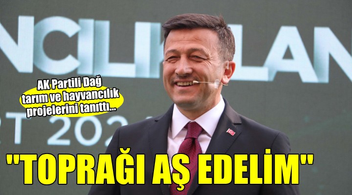 Büyükbaş hayvancılıkta İzmir'in Türkiye'de en önde gelen illerinden birisi olduğunu aktaran Dağ, "Şehrimizde 800 bine yakın büyükbaş hayvan bulunmaktadır. Büyükbaş hayvancılığının yanı sıra, arıcılık, kümes hayvancılığı ve su ürünleri gibi birçok hayvancılık faaliyetiyle ülkemizde ve bölgemizde önemli bir merkez konumundadır. İzmir'imizde, 1 milyona yakın küçükbaş, 20 milyonun üzerinde kümes hayvanı ve 250 bin civarı kovan bulunmaktadır. Bölgemize modern bir 'Hayvan Pazarı' kazandıracağız. Fiziki imkanlarıyla rahat ve sağlıklı bir ortam sunacağız. İnşallah göreve geldiğimizde tam donanımlı bir mezbahayı Bayındır'a ve bölgemize kazandıracağız. Küçük işletme ve üreticilerimiz için 'Hayvan Çadırı' ve yem depolama için branda desteği sağlayacağız. Ayrıca dağ köylerimizde küçükbaş hayvan sayısının artırılması için çeşitli projelerimiz olacak. Kanatlı hayvan yetiştiriciliği ve yumurta üretiminde önemli bir potansiyele sahip olan Torbalı'yı ve bölgemizi bu alanda önemli bir merkez haline getireceğiz" dedi.