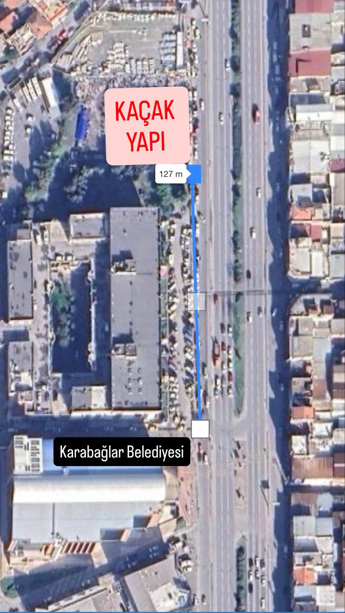 Yeşillik Caddesi üzerinde, Karabağlar Belediye Binası’nın yalnızca 127 metre gerisinde, her gün hem Helil Kınay’ın hem de belediye bürokratlarının önünden defalarca geçtiği illegal bit pazarı, yaklaşık 2.500 m² kapalı alanda faaliyet göstermektedir.