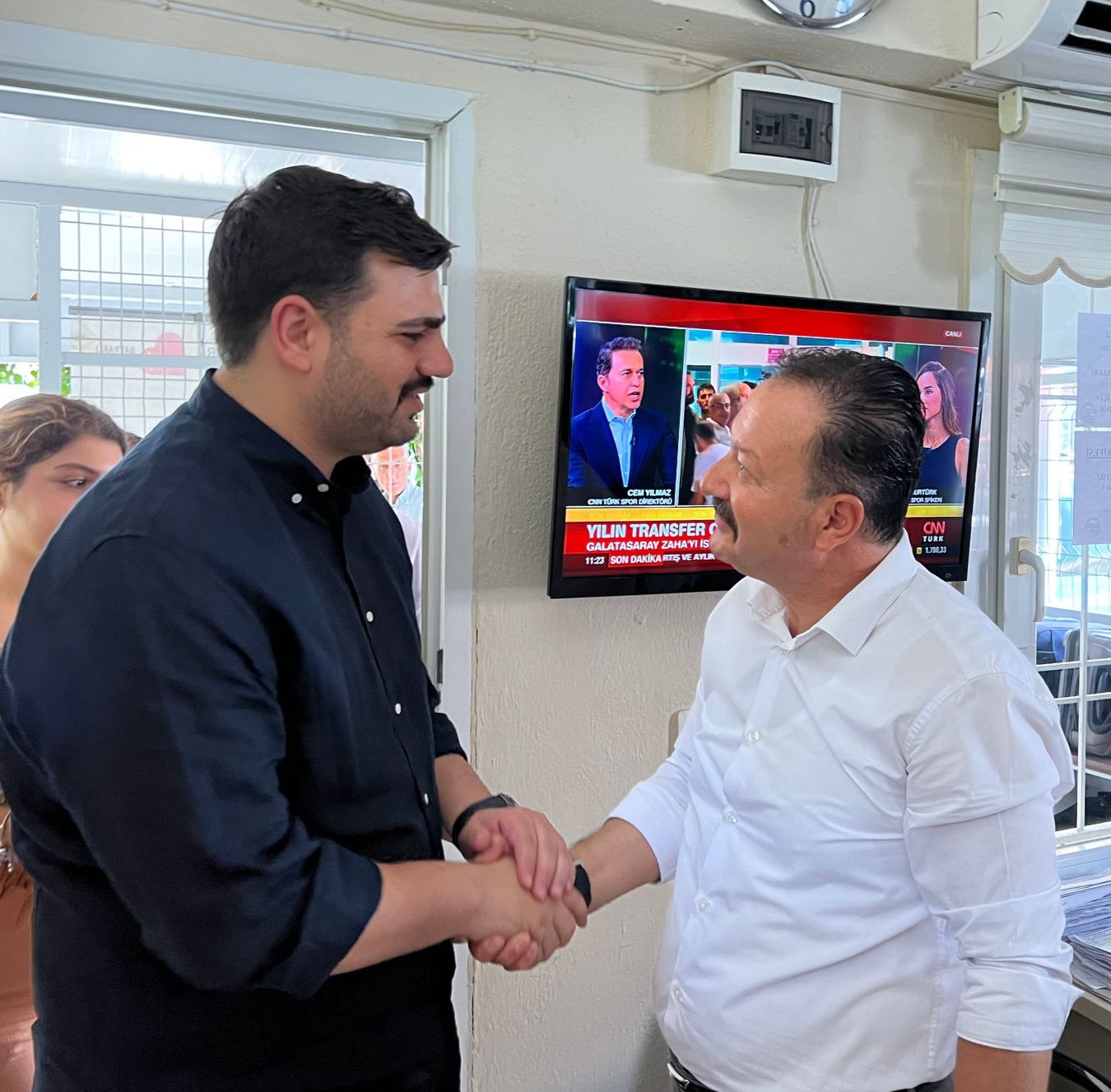 Bayraklı Çay Mahallesi Muhtarı Sabri Yılmaz’ı ziyaret ederek programlarına başlayan Eyyüp Kadir İnan, muhtarlar ziyareti mesaisine Çiçek Mahalle Muhtarı Sezai Çelik, Fuat Edip Baksı Mahalle Muhtarı Necdet Sivarioğulları, Turan Mahalle Muhtarı Nursel Ölmez, Alpaslan Mahalle Muhtarı Fahri Karatay ile bir araya gelerek devam etti.
