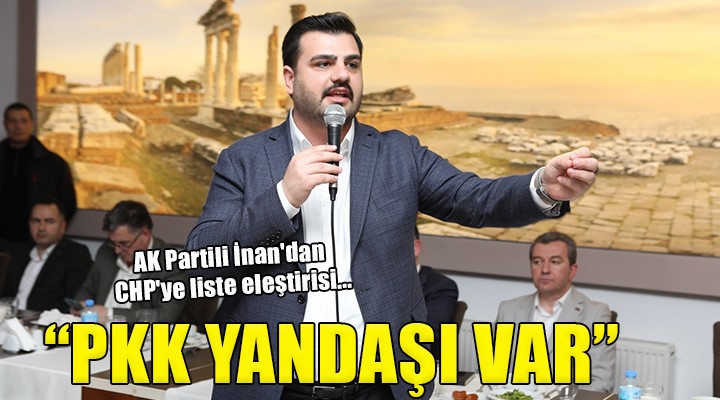 Bergama'da Eğitim Bir-Sen'in düzenlediği dayanışma ve kaynaşma programında konuşan İnan, CHP’nin İzmir Milletvekili adayları listesine bakıldığında Atatürk’e ‘diktatör’ diyen kişinin ilk sırada olduğunu ve PKK ve FETÖ yardakçılarının listelerde yer bulduğunu öne sürdü. Öte yandan İzmir'in CHP'li yerel yönetimlerinin hizmet üretmediğini iddia eden İnan, 2024 yılında yapılacak olan yerel seçimlerde İzmirlilerin AK Parti belediyeciliğiyle tanışacağını söyledi.