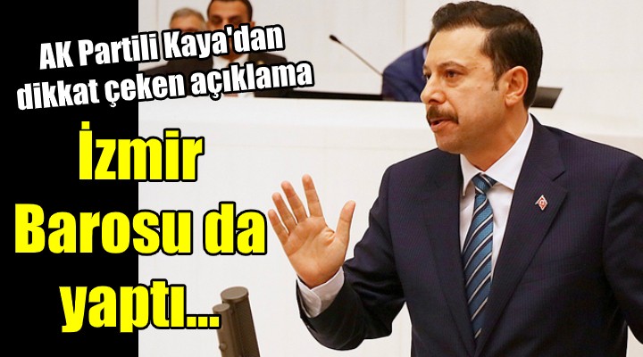 İzmir Barosu'nu terörist sevicilerle yan yana durmakla itham eden AK Partili Kaya, "Terörist sevicilerle yan yana durmakta hiçbir beis görmeyen, eli kanlı çocuk katillerinin siyasal uzantılarını bağrına basan İzmir Barosu da Diyanet'e (nefret söylemi) suçlamasında bulunmuş. Asıl nefret söylemi teröre arka çıkmak, asıl nefret suçu terörü cesaretlendirmektir. Mübarek Ramazan ayını ifa ettiğimiz şu günlerde ifade etmek isterim ki, çağlar öncesinden gelen o kutlu ses ebediyen semada yankılanmaya ve kalplerde karşılık bulmaya devam edecektir. Zira o sesi koruyacak olan, sahibidir" ifadelerini kullandı.