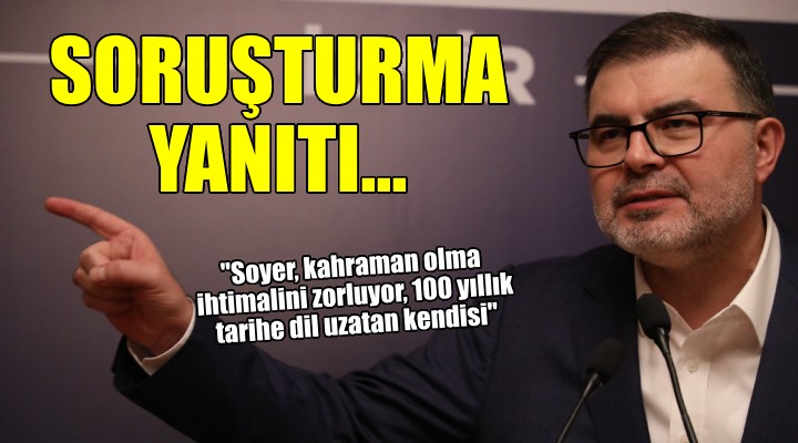 "’100 yılın tarihine dil uzatan kendisi! 100 yıl geçse hizmet adamı olamayacak da kendisi! İzmir Büyükşehir Belediye Başkanı CHP'li Tunç Soyer, son düzlükte mağdur edebiyatı ve taktiklere sığınmış görünüyor! İzmir'e yaptığı hizmet yok, yatırım yok. Bu kara deliği örtmek için en çok sığındığı ve laf ebeliği yaptığı genel siyasette, strateji hatası yapıp, duvara da çarpıp yeniden adaylığı hayale dönüşünce, ne yapacağını şaşırmış. Mağduru oynarsa, partisi ve İzmirliler kendisine aslında hiç hak etmediği desteği ve ödülü verecek sanıyor olmalı! Çok biçare kalmış olmalı ki; 9 Eylül konuşmasında ecdada ve tarihe hakaretleri için Osmanoğulları Ailesi'nin ve halkın şikayetleri üzerine İçişleri Bakanlığı'nın araştırma kararını sanki ortada bir soruşturma ve dava varmış gibi basın yoluyla köpürterek kahraman olma ihtimalini zorluyor! Bu yöntem belki işine yarayabilirdi; başkanlık ve hizmet karnesi baştan aşağı zayıfla dolu olmasaydı. Ama bu şartlarda zor! Bu nedenle, yanlışlarının açıklamasını yapmayı bir fırsata çevirmeye çalışmak yerine, kalan zamanını daha verimli işler yaparak değerlendirmeli.’’