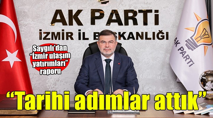 Saygılı, "23 yıldır lafla değil, icraatla konuşuyoruz. 2002’de 431 kilometre olan bölünmüş yol uzunluğunu 977 kilometreye çıkararak şehrin ulaşım omurgasını yeniden inşa ettik. İzmir Çevre Yolu’nu 55,5 kilometre uzunluğunda tamamlayarak, Konak Tüneli’yle şehir içi trafiğine nefes aldırarak, İzmir-İstanbul Otoyolu’yla 8,5 saat süren mesafeyi 3,5 saate indirerek, Menemen-Aliağa-Çandarlı Otoyolu’nu hizmete açarak, Sabuncubeli Tüneli ile İzmir-Manisa arasını sadece 15 dakikaya düşürerek ulaşımda tarihi adımlar attık. Biz İzmir’e ne verdik diye soranlara, sadece rakamlarla değil; vizyonla, icraatla, eserle cevap veriyoruz.’’ dedi.