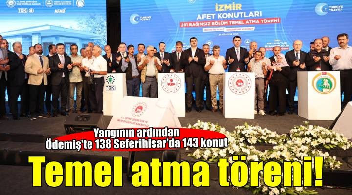 İzmir’in Ödemiş ilçesinde Temmuz ayı başında çıkan yangında zarar gören köylerde, yeni evlerin temellerinin atıldığı törene; Çevre Şehircilik ve İklim Değişikliği Bakanı Murat Kurum, AK Parti Genel Sekreteri ve İzmir Milletvekili Eyyüp Kadir İnan, AK Parti İzmir İl Başkanı Bilal Saygılı, AK Parti MKYK Üyesi Hamza Dağ, AK Parti İzmir Milletvekili Mahmut Atilla Kaya, MHP İzmir İl Başkanı Veysel Şahin, İzmir Valisi Süleyman Elban, Belediye başkanları ve vatandaşlar katıldı. Temel atma töreni sonrası değerlendirmelerde bulunan AK Parti İzmir İl Başkanı Bilal Saygılı, "Temmuz ayının başında yaşanan büyük yangında köylerimizde birçok ev yandı. En büyük tesellimiz can kaybı yaşanmamış olmasıydı. Cumhurbaşkanımız Sayın Recep Tayyip Erdoğan, yangını ilk andan itibaren yakından takip etti ve Ödemişli hemşehrilerimizin evlerinin yapılması için hemen talimat verdi. Çevre, Şehircilik ve İklim Değişikliği Bakanımız Sayın Murat Kurum, yangının hemen ardından bölgeye gelerek yerinde incelemelerde bulundu ve kısa sürede kalıcı konutların yapım süreci başlatıldı.”