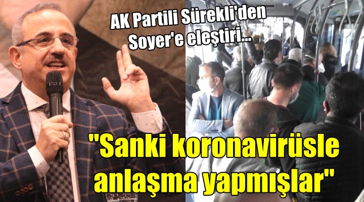 SONKALEİZMİR-AK Parti İzmir İl Başkanı Kerem Ali Sürekli, koronavirüsle mücadele döneminde İzmir Büyükşehir Belediyesi'ni yetersiz kalmakla eleştirdi. Sosyal medya hesabından otobüslerin ve durakların kalabalık fotoğraflarını yayınlayan Sürekli, "Metro, otobüs , tramvay duraklarına bakıldığında; şovların arkasında iç çekerek ağlayan bir İzmir görüyoruz. Sanki, koronavirüsle masaya oturup anlaşma yapmışlar" ifadelerini kullandı.