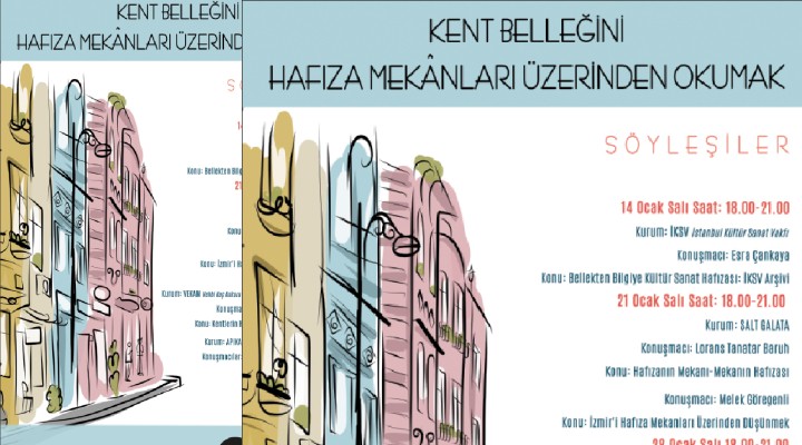 Söyleşiler dizisinin 21 Ocak'ta iki konuğu olacak. SALT GALATA'dan Lorans Tanatar Baruh “Hafızanın Mekânı Mekânın Hafızası”, akademisyen Prof. Dr. Melek Göregenli “İzmir'i Hafıza Mekânları Üzerinden Düşünmek” üzerine konuşacak.
