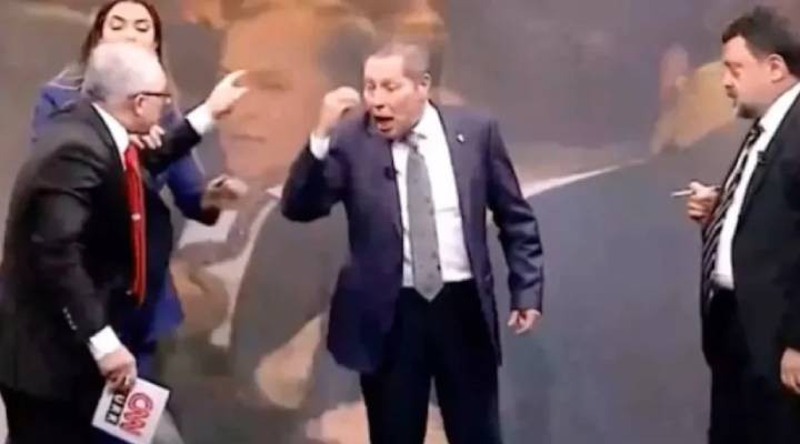 Tartışmanın giderek daha sert bir hal almasıyla, iki gazeteci ayağa kalkarak birbirlerine yüksek sesle karşılık vermeye başladı.