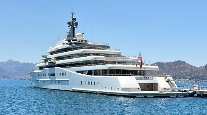 İngiliz hükümetinin el koyduğu, Chelsea Futbol Kulübü'nün sahibi, Rus iş insanı Roman Abramoviç'in 163,5 metre uzunluğunda, 23 metre genişliğindeki 1,2 milyar dolarlık yatı 'Eclipse', 2022 yılının mart ayında Yunanistan'ın Rodos Adası'ndan Marmaris'e geldi.
