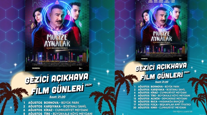 İzmirli yurttaşlar, açık havada sinema keyfini doyasıya yaşayacak. Tolga Örnek’in yönetmenliğini ve senaristliğini üstlendiği, Cengiz Bozkurt, Şebnem Bozoklu, Boran Kuzum ve Eren Demirbaş’ın rol aldığı Mucize Aynalar filmi, İzmir Büyükşehir Belediyesi tarafından organize edilen Gezici Açıkhava Film Günleri kapsamında gösterilecek. Mucize Aynalar, 1 Ağustos’ta Bornova Büyük Park’ta, 2 Ağustos’ta Karşıyaka Bostanlı Sahili’nde, 6 Ağustos’ta Kiraz Cumhuriyet Meydanı’nda, 8 Ağustos’ta Tire Büyükkale Köyü Meydanı’nda, 13 Ağustos’ta Aliağa Demokrasi Meydanı’nda, 15 Ağustos’ta Buca Hasanağa Bahçesi’nde, 17 Ağustos’ta Foça Beşkapılar Amfi Tiyatro’da ve 20 Ağustos’ta Kınık Cumhuriyet Meydanı’nda sinemaseverlerin beğenisine sunulacak. Tüm gösterimler ücretsiz ve saat 21.00’de yapılacak.