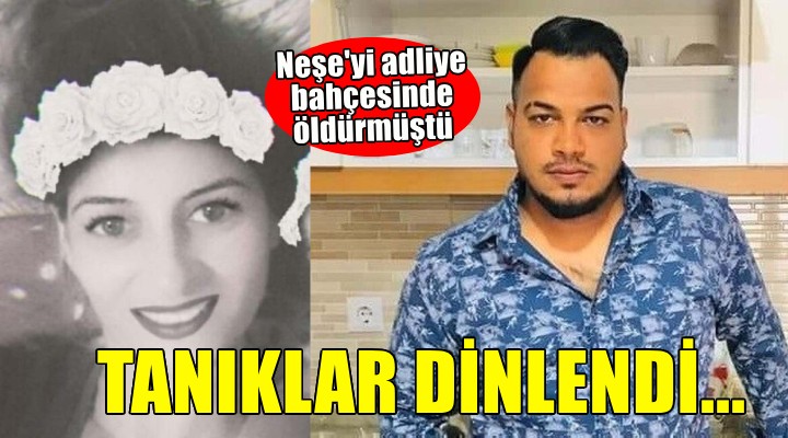 Alaattin Keçkin hakkında 'Eşi kasten öldürmek', 'Görevi yaptırmamak için direnme', '3 kişiye karşı öldürmeye teşebbüs' suçlarından dava açıldı. İzmir 4’üncü Ağır Ceza Mahkemesi'nde tutuklu sanığın yargılamasına devam edildi. Duruşmaya tutuklu sanığın yanı sıra taraf avukatları ve Kadın Cinayetlerini Durduracağız Platformu üyeleri katıldı. Duruşmada tanıklara söz verildi. Olay günü Seferihisar Adliyesi'nde yazı işleri müdürü olarak görev yapan S.S., Neşe Keçkin'e ilk yardım müdahalesi yaptığını söyledi. S.S., "Silah sesi duymadım. Gürültü üzerine odamdan çıktım. Maktul yerde yatıyordu, ön büroya aldılar. Bıçak veya silah görmedim. Maktulü kucağıma alıp tampon yapmaya çalıştım. Sanığın maktulü vurduğunu görmedim. Kucağıma aldığımda annesi yanıma geldi ve çok ağlıyordu" dedi.