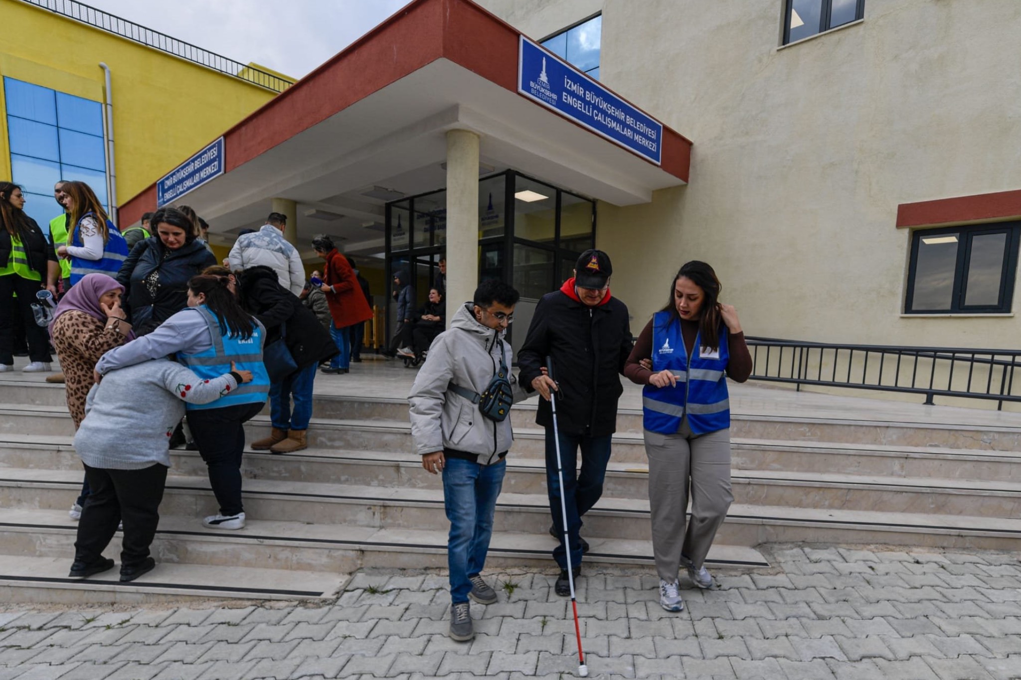 Ortopedik engelli Gülay Çoban da binaların engelli kullanımına uygun olması gerektiğine dikkat çekerek, “Binalar engelli kullanımına uygun olmadığı zaman engelliler için hayat çok zorlaşıyor. Karabağlar’daki bu merkez engelli kullanımına çok uygun. Böylece tatbikat esnasında dışarı çıkabildik. Biz yaşam alanlarının engelli bireylerin kullanımına uygun hale getirilmesini istiyoruz. O zaman biz de hiçbir zorluk yaşamadan, yardım olmadan acil durumlarda dışarı çıkabiliriz” diye konuştu.