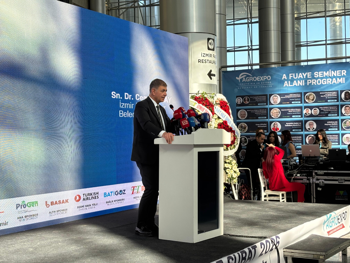 İzmir’in tarihsel olarak hem tarım hem de fuarlar şehri olduğunu belirten İzmir Büyükşehir Belediye Başkanı Cemil Tugay, “Geçtiğimiz yıl 120 bin üzerinden ziyaretçi katılmıştı. Bu sene 500 firma ve 150 bin katılımcı bekliyoruz. Tarım sektörünü kapsayacak ilerici teknolojilerine ulaşabilecekler. Bu çözümlere ihtiyacımız var. Dünya zorunlu bir dönüşüm sürecinin içinde. Bunu doğru okumak zorundayız. Birleşmiş Milletler Tarım verilerine göre 673 milyon insan açlıkla karşı karşıya. Su krizi geçen yıl da çok konuştuğumuz konularda biriydi. Şehrimiz beş ay yağış almadı. Su krizi en açık tehditlerden biri. Türkiye genelinde de benzer durumun yaşandığını biliyoruz. 240 gölden 186’sı tamamen kurudu. Geri kalanlarda da seviye kaybediyor ve kirlilik yaşıyorlar. İki temek zorunluluk var. Teknolojik dönüşüme ayak uydurmak zorundayız. Toplumumuzun tüm katmanlarıyla yerel yönetimden tüketicilere doğru ve ortak kararlar almak zorundayız. Bizim de hep birlikte bu iş birliğine ve ortak akıl boyutuna odaklanmamız gerekiyor. İzmir’in yüzde 30’u tarım arazisi. Bitkisel tarımda 2 veya 3. hayvansal üretimde 3. Sıradayız. İzBB olarak her zaman bu hacmin gerekliliklerine yakışır şekilde hareket etmeye çalışıyoruz. Kırsal Daire Başkanlığı kurduk bu adımı kırsalın sorununa hızla ulaşmak için kurduk. Tarım ve Gıda komisyonu oluşturduk. Çok sesli bir şekilde tartışmak ve ortak akıl üretmek için kuruldu. Kentsel Gıda Stratejisi planımızı yürütüyoruz” ifadelerini kullandı.