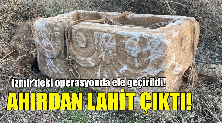 İzmir'in Ödemiş ilçesinde düzenlenen operasyonda ahıra gizlenmiş 85 santimetre uzunluğunda lahit bulundu.