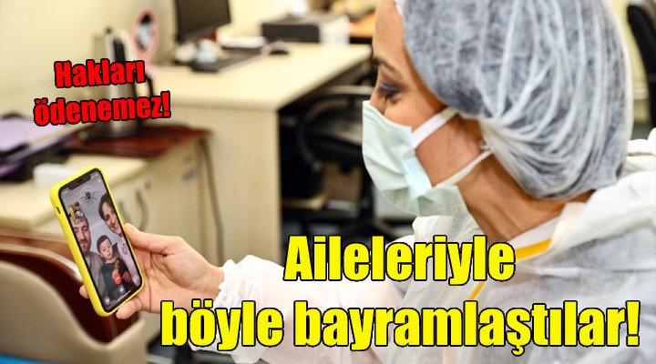 Geçen yıl mart ayından bu yana kentte salgınla mücadele hastanesi olarak hizmet veren İzmir Katip Çelebi Üniversitesi (İKÇÜ) Atatürk Eğitim ve Araştırma Hastanesinde görevli yaklaşık 4 bin sağlık çalışanından 1000'i Ramazan Bayramı'nı görev başında geçiriyor. Çalışanlar, çocukları ve yakınlarıyla görüntülü konuşarak bayram sevincine ortak oluyor.