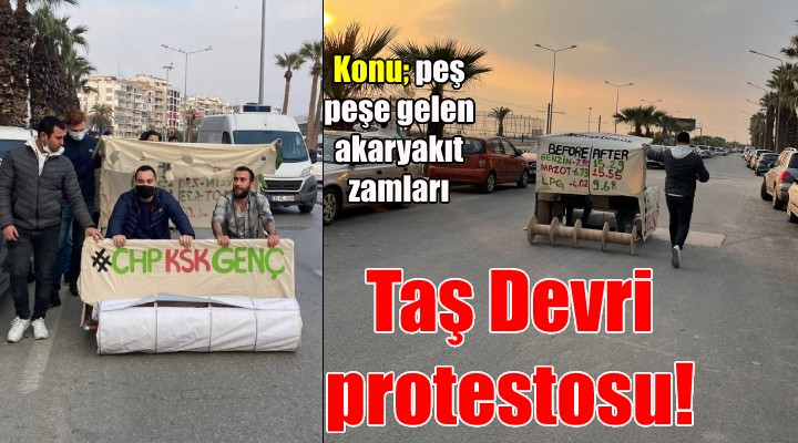 CHP Karşıyaka Gençlik Kolları, akaryakıta gelen peş peşe zamları ve yüksek ÖTV oranlarını ilginç bir yöntemle protesto etti. Ünlü çizgi film Taş Devri'ndeki Fred Çakmaktaş'ın ayakla kullandığı arabaya benzer bir araç hazırlayan CHP'li gençler, Karşıyaka Çarşı'yı turladı. Karşıyaka İskele'de ise trafiğe çıkan araç, ilgi çekti.