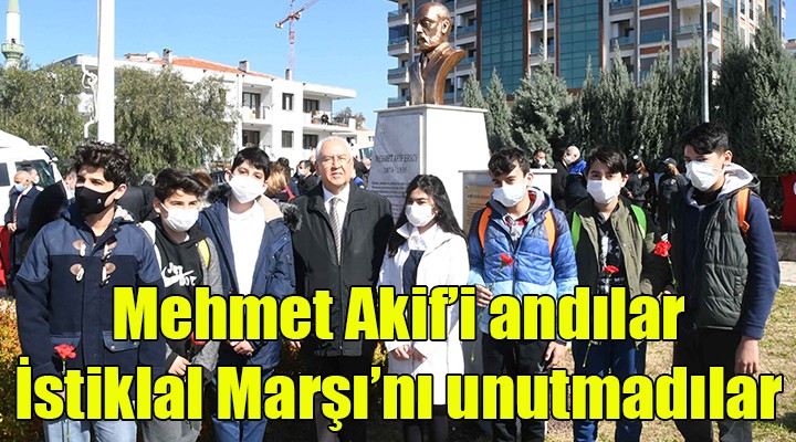 Karabağlar Belediyesi, günün anısına Tahsin Yazıcı Mahallesi’ndeki Mehmet Akif Ersoy Parkı’nda tören düzenledi. Parktaki Mehmet Akif Ersoy anıtının önünde gerçekleştirilen törene, Karabağlar Belediye Başkanı Muhittin Selvitopu, CHP İzmir İl Başkan Yardımcısı Çetin Özdemir, CHP İlçe Başkanı Mehmet Türkbay, meclis üyeleri, muhtarlar, Karabağlar Belediyesi Sosyal Etkinlik Merkezi (KARBEM) öğrencileri ve vatandaşlar katıldı.