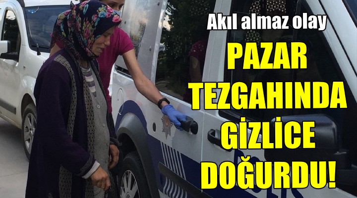 Tire'nin Türkocağı Caddesi'ndeki pazar tezgahının yanında kan bulunduğu ihbarı üzerine olay yerine polis ekipleri sevk edildi. Ekiplerce, ağabeyiyle pazarcılık yapan H.D'nin (29) açtığı pazar tezgahının altında şalvara sarılı bebeğin cansız bedeni bulundu. Bekar ve hamile olan H.D'nin 08.00 civarında pazar tezgahının altına girerek doğum yaptığı, bebeği şalvara sararak tezgahın altına bıraktığı iddia edildi. Bebeğin cansız bedeni, otopsi için İzmir Adli Tıp Kurumuna gönderildi. Tire Devlet Hastanesine kaldırılan H.D, savcılık tarafından akıl sağlığının yerinde olup olmadığının tespiti için Manisa Ruh Sağlığı ve Hastalıkları Hastanesine gönderildi.