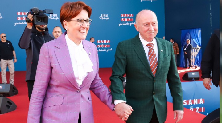 Konuşması için kürsüye çıkan İYİ Parti Genel Başkanı Meral Akşener bir ilke imza attı. Bu güne kadar siyaset sahnesinde görünmeyen eşi Tuncer Akşener’le birlikte kürsüden İzmirlileri selamladı.