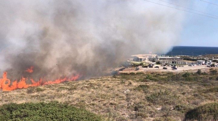 İzmir Orman Bölge Müdürlüğüne bağlı ekipler, Alaçatı'nın güney tarafındaki otluk alanda başlayan yangına 1 uçak, 3 helikopter ve kara araçlarıyla müdahale etti.