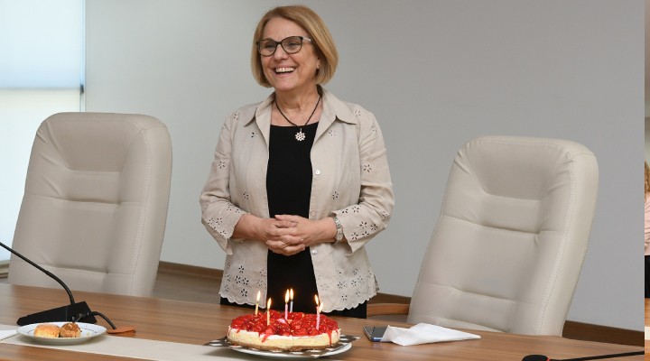 Karabağlar Belediye Başkanı Muhittin Selvitopu’nun başkan yardımcılarıyla her hafta yaptığı olağan toplantıya son kez katılan Ağrı için, toplantının hemen ardından emeklilik pastası kesildi.