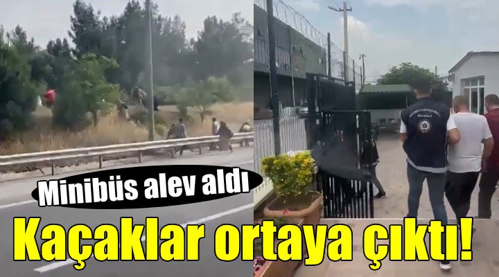 Olay, dün akşam saatlerinde Buca Otoyolunda meydana geldi. Seyir halindeki kapalı kasa minibüsün motor kısmından dumanlar çıktığını fark eden sürücü, aracı yolun orta kısmındaki refujde durdurdu. Kısa sürede dumanla kaplanan minibüsten aralarında çocukların da bulunduğu onlarca göçmen inerek, araç trafiğinin yoğun olduğu otoyolda tehlikeli bir şekilde yolun kenarına doğru koştu. Şans eseri herhangi bir kazanın yaşanmadığı olay sırasında yol kenarına ulaşan kaçak göçmenler ormana girerek izlerini kaybettirmeye çalıştı. Bu sırada yoldan geçen mikser aracı yanan minibüsün yakınında durdu ve su sıkarak araç yangınına müdahalede bulundu.