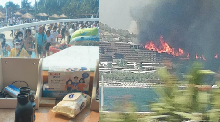Rüzgarın da etkisiyle kısa sürede geniş bir alana yayıldı. Yangın bölgedeki bir otele yaklaşınca tahliye kararı alındı.