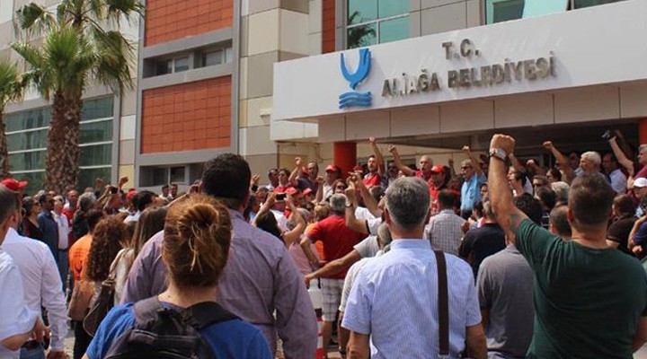 SONKALE- İzmir Aliağa'da ikinci kez belediye başkanlığına seçilen MHP'li Serkan Acar ile işçiler arasındaki gerilim doruk noktaya ulaştı. Daha önce 22 taşeron işçiyi çıkardığı belirtilen Acar bu kez 100 kadrolu işçiyi daha çıkarınca ortalık karıştı. Yıllardır belediyede çalışan kadrolu işçilerin ekonomik gerekçelerle iş akdinin fesh edilmesine DİSK Genel- İş sendikası tepki gösterdi. Sendika yetkilileri ve işten çıkarılan işçiler Aliağa Belediyesi binası önünde eylem kararı aldı. Sloganlar atan işçiler, işlerine geri dönmek istediklerini söyledi.