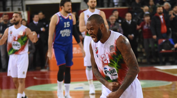 Ligde geçen sezon şampiyon olarak Euroleague'de final oynayan, bu yıl da iki kulvarda birden lider olan dev rakibini son anda Larkin'in turnikesiyle elinden kaçıran Kaf-Kaf, bu sezon evinde ilk mağlubiyetini aldı. Anadolu Efes randevusuna kadar lig ve FIBA Europe Cup'ta iç sahada oynadığı 12 maçı da kazanan Karşıyaka, uzatmada evinden ilk kez mağlup ayrıldı.