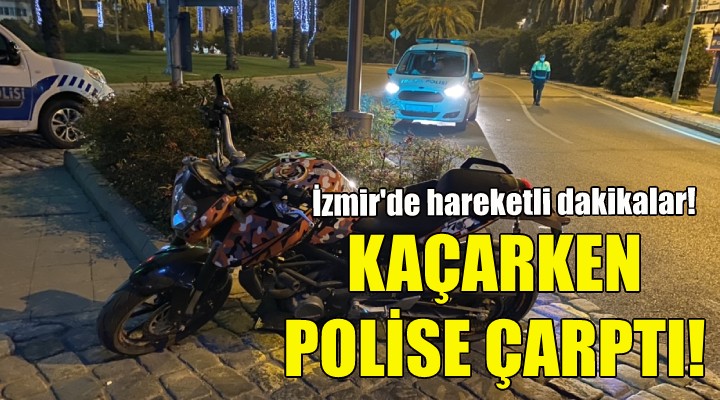 Olay, saat 01.30 sıralarında Cumhuriyet Bulvarı'nda meydana geldi. İddiaya göre, trafik polisleri uygulamasında Alsancak'tan Konak'a giden B.S. idaresindeki 35 ALH 172 plakalı motosikleti durdurmak istedi. Polisin 'dur' ihtarına uymayan B.S. uygulama noktasından kaçmaya çalışırken motosikletinin polise çarpması sonucu direksiyon kontrolünü kaybederek yola savruldu.