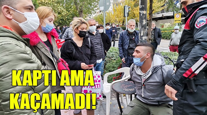 SONKALEİZMİR- Olay, öğle saatlerinde Alsancak Gül Sokak'ta yaşandı. Kimliği henüz tespit edilemeyen hırsız, adres sorma bahanesiyle, yolda yürüyen öğrenci Buse Yıldırım'ın yanına yaklaştı. Genç kızla konuşurken bir anlık dalgınlığından faydalanıp cebindeki cep telefonunu çeken hırsız, kaçmaya başladı. Ancak, genç kızın çığlıkları üzerine hırsız, henüz 10- 15 metre kaçabildikten sonra çevredeki yurttaşlar tarafından etkisiz hale getirildi. Kalabalık grup, hırsızın etrafını sarıp kaçmasını önledi.