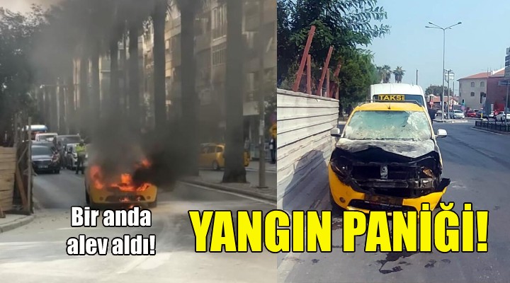 Talatpaşa Bulvarı’nda saat 11.00 sıralarında, seyir halindeki içerisinde yolcu bulunmayan 35 T 6896 plakalı taksinin motor kısmından, alevler yükselmeye başladı. Kısa sürede büyüyen alevler, aracın ön bölümünü sardı.