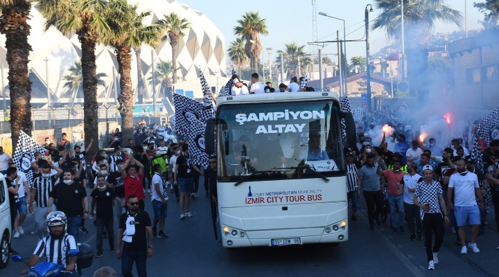 İzmir Büyükşehir Bandosu eşliğinde konvoy halinde Kordon Boyu'nda İzmirlilerin alkışlarıyla tur atan siyah-beyazlılar, Gündoğdu Meydanı'nda kutlamalara devam etti. Başkan Özgür Ekmekçioğlu, taraftarların isteği üzerine "üçlü" çektirirken, Teknik Direktör Mustafa Denizli de kendisine sevgi gösterisinde bulunan taraftarları selamladı. Altaylılar, meşaleler yakıp, "Şampiyon Altay" tezahüratlarıyla renkli görüntüler oluşturdu.