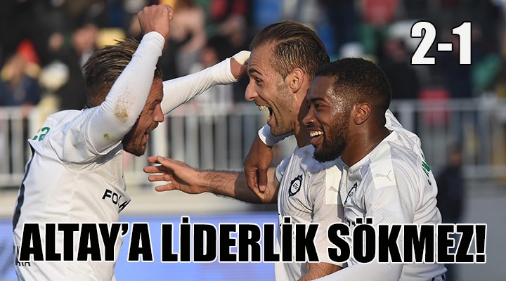 TFF 1'inci Lig’de 27’nci hafta mücadelesinde play-off hattında yer alan Altay, evinde 1-0 geriye düştüğü maçta lider Hatayspor’u 2-1 mağlup ederek taraftarını sevince boğdu. İlk yarısı 0-0 sona eren maçta konuk ekip 56'ncı dakikada Mesut’un penaltı golüyle öne geçti. Altay bu gole 59'uncu dakikada Paixao’nun penaltı golüyle yanıt verdi. Ev sahibi ekibin ikinci golünü yine Paixoa, bu kez 82'nci dakikada kaydetti. Bu sonuçla İzmir temsilcisi 42 puana ulaşıp, ilk 2 için umutlandı. Hatayspor 50 puanda kaldı.