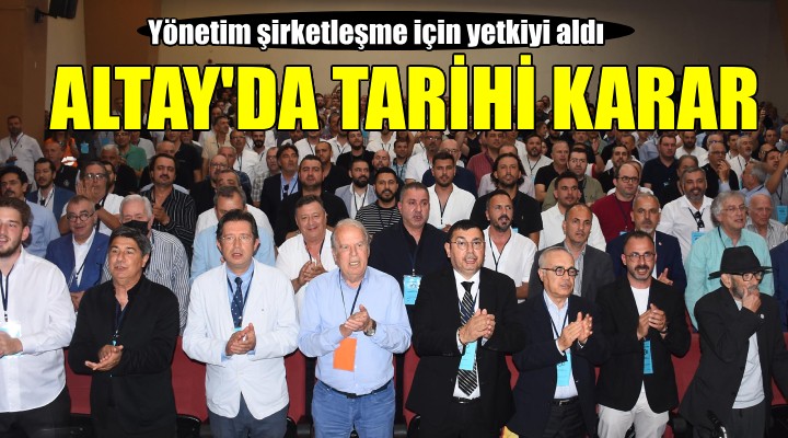 Oylama sonucu mevcut yönetim, kulübün futbol şubesinin yarışmacı haklarını mayıs ayında kurulan Büyük Altay 1914 Futbol ve Spor Yatırımları Anonim Şirketi'ne devretme yetkisi aldı. Camianın önde gelen isimleri yeni sezon öncesi siyah-beyazlı kulübe yatırımcı bulmak için çalışmalara başlayacak. Son olarak toplam borcu 684 milyon 555 bin TL olarak açıklanan Altay'da güçlü bir yatırımcı bulunup, transfer yasağının kaldırılması ve iddialı bir takım kurulması hedefleniyor.