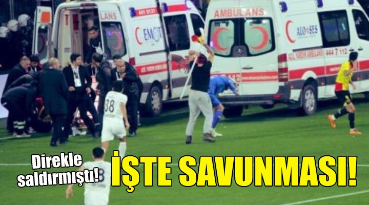 Tutuksuz sanık Mehmet Nihat A. bugün İzmir 3’üncü Ağır Ceza Mahkemesi’nde hakim karşısına çıktı. Duruşmaya Mehmet Nihat A. ve avukatı katıldı. Olay sebebiyle üzgün olduğunu belirten Mehmet Nihat A, "Karşı tarafın işaret fişeği atması üzerine kızgınlıkla sahaya atladım. Ozan Evrim Özenç’i tanımam ve kendisiyle husumetim de yoktur. Hem kendisinden hem de Göztepe Spor Kulübü ve Göztepe taraftarlarından özür dilerim. Cezaevine girdiğimden beri kendine kızıyorum. Daha önce suç işlemedim. Anlamsız bir öfkeyle anlamsız bir olaya imza attım" dedi. Mahkeme başkanının karşı tribünde kayınbiraderi olup olmadığını sorması üzerine Mehmet Nihat A., "Evet kayınbiraderim karşı tribündeydi" yanıtını verdi.