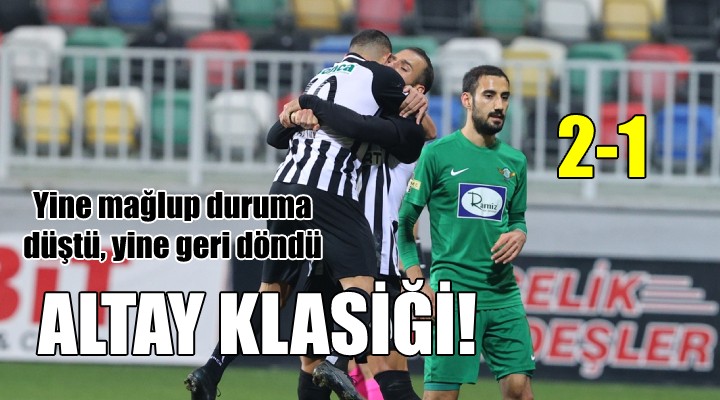 TFF 1'inci Lig'de zirve mücadelesi veren Altay, evinde 1-0 geriye düştüğü maçta alt sıralardan uzaklaşmak isteyen Akhisarspor'u 2-1 mağlup etti. Konuk ekip maçın 7'nci dakikasında Çekdar'ın golüyle öne geçerken, 36'ncı dakikada Regattin'in penaltı golüyle skora denge getiren Altay, 82'nci dakikada Thiam'ın golüyle galibiyete uzandı. Üst üste 3'üncü zaferini elde eden Altay 26 puana ulaşırken, art arda 5'inci yenilgisini alan Akhisarspor 13 puanda kaldı.