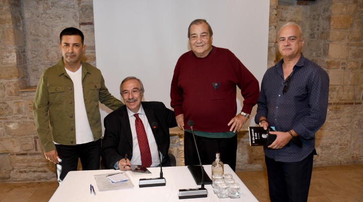 Aydın Büyükşehir Belediyesi, Kuşadası Belediyesi ve Kuşadası Altın Güvercin Kültür Sanat ve Tanıtım Vakfı (KUSAV) iş birliğinde bu yıl 24’üncü kez düzenlenen Kuşadası Altın Güvercin Beste ve Müzik Yarışması’nın Koordinatörü, prodüktör, gazeteci ve yazar Ali Rıza Türker İbramaki Sanat Galerisi’nde düzenlenen bir söyleşide okurları ile bir araya geldi. Kitapseverlerin yoğun ilgi gösterdiği etkinliğe Kuşadası Belediye Başkanı Ömer Günel, KUSAV Başkanı Levent Köylü, Kuşadası Belediyesi eski Başkanı Engin Berberoğlu ile yarışmanın altın sponsoru olan Eviz Yapı’dan Şakir Eviz de katıldı. Söyleşide Kuşadası Belediyesi’nin sanata ve sanatçıya verdiği desteğe değinen Ali Rıza Türker, ardından iki bölümden oluşan kitabının yazım sürecini okurlarıyla paylaştı.