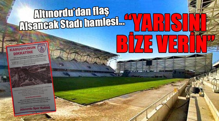 SONKALEİZMİR-Altınordu Spor Kulübü, gazetelere ilan verecek yenilenen ve açılması için gün sayılan Alsancak Stadı'nın saha ve bina kullanım hakkının yarısının kendilerine verilmesini istedi. Açıklamada şöyle denildi: