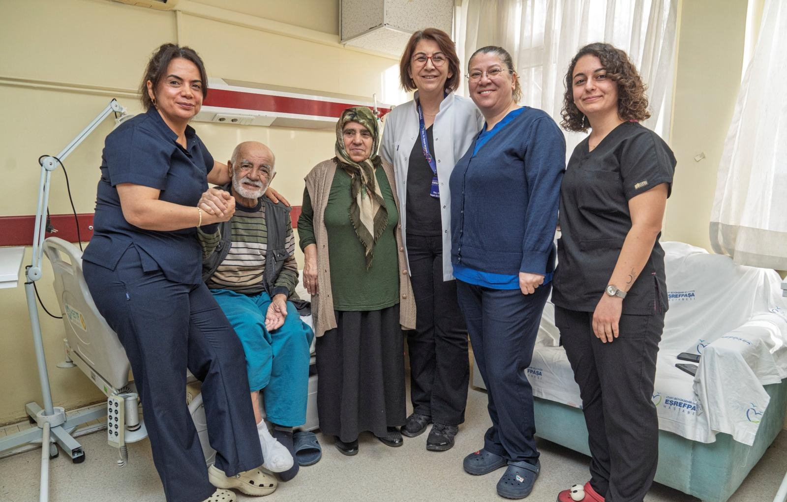 Diyabet hastası 83 yaşındaki Mustafa Kafa, hastalığına bağlı diyabetik ayak enfeksiyonu nedeniyle Artvin’de çeşitli hastanelere başvurdu. Kafa’ya diyabetik ayak ampütasyonu önerilmesine rağmen, farklı bir tedavi umuduyla İzmir Büyükşehir Belediyesi Eşrefpaşa Hastanesi’ne geldi. Enfeksiyon, dahiliye, ortopedi ve plastik cerrahi birimlerinin ortak çalışmasıyla 90 gün boyunca tedavi edilen Kafa, sağlığına kavuşarak taburcu edildi. Kafa, “Ayağım perişan durumdaydı. Başka hastanelerde kesileceğini söylediler. Burada ‘bu ayağı kurtarırız’ dediler ve başardılar. Hepsine çok teşekkür ediyorum. Şu an iyiyim, ayağıma çocuk bakar gibi bakmamı söylediler, biz de buna uyacağız” ifadelerini kullandı. Kafa, kendisiyle ilgilenen hekim ve hemşirelerle birlikte Artvin’de fındık toplayacağının sözünü verdi.
