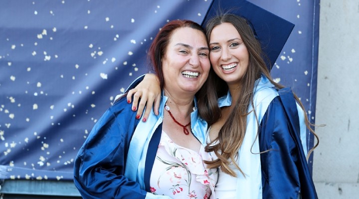 Yaşar Üniversitesinden yapılan açıklamaya göre, yıllardır sürdürdüğü avukatlık mesleğinin ardından emekli olan Rüyam Ağaoğlu, Marina ve Yat İşletmeciliği bölümünü birincilikle bitirirken, kızı Dide Irmak ise Hukuk Fakültesinden mezuniyet sevinci yaşadı.