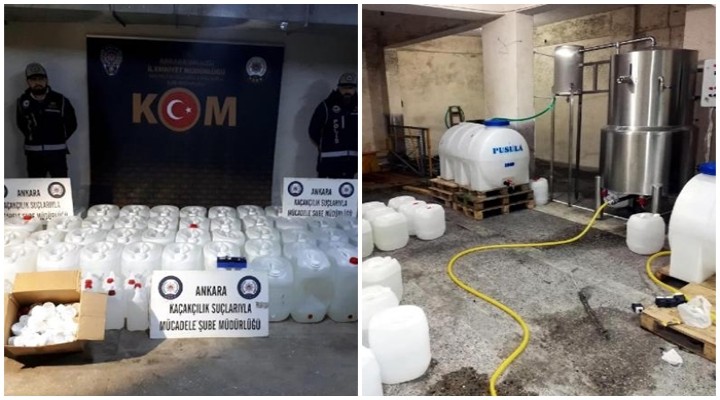 İl Emniyet Müdürlüğü Kaçakçılık Suçlarıyla Mücadele Şube Müdürlüğüne bağlı ekipler, Yenimahalle ilçesinde 'merdiven altı' tabir edilen depoda hijyenik olmayan koşullarda sahte içki üretildiğini tespit etti. Depoya yapılan baskında, sahte içki üretiminde kullanılan çok sayıda malzeme, yurt dışından getirildiği belirlenen özel alkol ölçüm cihazı ile 1880 litre etil alkol ele geçirildi.