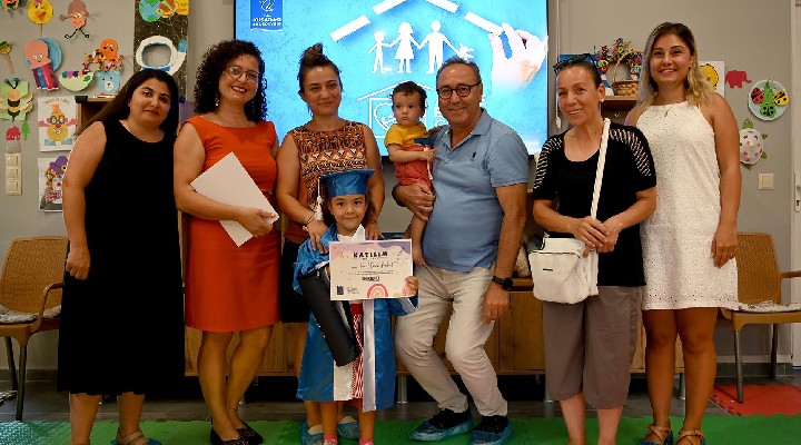 Cafer Kotan Yaşam Parkı'ndaki Güler Aydın Süzgeç Sosyal Tesisinde bulunan Anne Baba Çocuk Merkezi, okul öncesi eğitimi gören çocukların 17’nci dönem mezuniyet heyecanına tanıklık etti. Bu kapsamda merkezde, uzman eğitmenler tarafından 3-6 yaş arasındaki çocuklara yönelik verilen programa katılan minikler için sembolik bir mezuniyet töreni düzenlendi. Törende mezuniyet cübbesi giyip, kep takan çocuklara sertifikaları Sosyal Yardım İşleri Müdürlüğü çalışanları tarafından verildi. Törene katılan anne ve babalar çocuklarıyla bol bol hatıra fotoğrafı da çektirdi. Etkinlik, Kuşadası Belediyesi tarafından ailelere çay ve pasta, çocuklara ise meyve suyu ikramında bulunulmasıyla sona erdi. Ebeveynler, Başkan Ömer Günel’e Anne Baba Çocuk Merkezi’ni Kuşadası’na kazandırdığı için teşekkür etti.