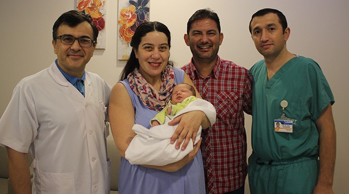 Özel bir şirkette yönetici olan Emine Bayram ile iş adamı Gültekin Bayram (41) çifti 9 yaşındaki oğulları Efe Tekin’den sonra ikinci kez anne baba olmaya hazırlanırken, hayatlarının sürprizini yaşamıştı. Anne adayı sorunsuz giden gebeliğinin 24. haftasında anlam veremediği şiddetli karın ağrıları çekmeye başlamış, bu ağrıların bebeğinin gelişimini etkileyeceği korkusuna kapılmıştı. Oğlundan sonraki ikinci gebeliğinde bebeğini 10 haftalıkken kaybetmesi yüzünden aynı şeylerin bir kez daha başına geleceği kaygısını yaşayan Emine Bayram, Kent Hastanesi’nde doktoru Kadın Hastalıkları ve Doğum Uzmanı Doç. Dr. Tunç Canda’ya başvurmuş, apandisit sürprizi ile karşı karşıya kalmıştı. Anne adayı Bayram, Doç. Dr. Canda’nın ağrıların bebeği, gebeliğiyle ilgili olmadığını söylemesinin ardından rahat bir nefes alırken, apandisit şüphesiyle genel cerrahi uzmanı Op. Dr. Zaza Iakobadze’ye yönlendirilmişti. Nitekim şüpheler doğru çıkmış ve Op. Dr. Iakobadze tarafından kapalı yöntemle ameliyat edilen Bayram sağlığına kavuşarak taburcu edilmişti. Ameliyat sonrasındaki süreci de rahat ve sorunsuz geçiren Bayram, geçtiğimiz 10 Ekim’de Kent Hastanesi’nde doğum yaptı. Doç. Dr. Canda’nın gerçekleştirdiği sezaryenle bir kız bebek dünyaya getiren Bayram, apandisit şokundan sonra ikinci kez annelik sevinci yaşadı.