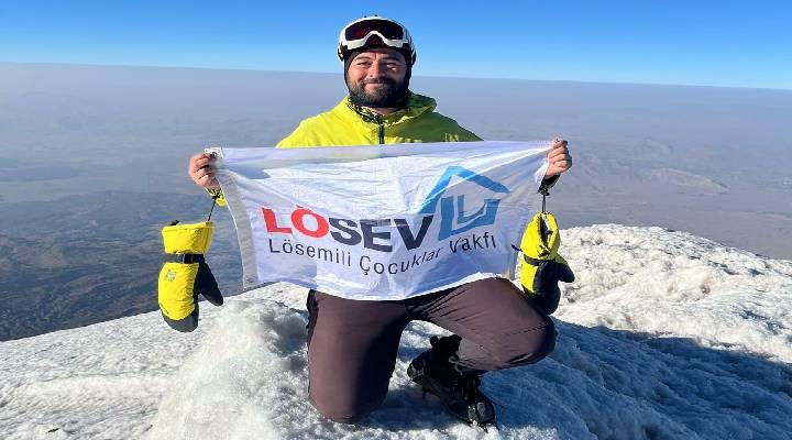 İzmirli dağcı İbrahim Gürlekci dördüncü kez çıktığı Ağrı Dağı tırmanışında, 5 bin 137 metre yüksekliğindeki zirveye ulaşarak LÖSEV flaması açtı. Türkiye’nin en yüksek dağı olan Ağrı Dağı’na tırmanan Gürlekci, bu yolculuğun sadece bir spor faaliyeti olmadığını belirtip, "Bu aynı zamanda lösemiyle mücadele eden gençlere moral olmak için yapılan bir umut tırmanışıdır. Bu sadece benim değil, kanserle mücadele eden çocukların zaferiydi. Onlara yalnız olmadıklarını göstermek istedim" dedi. Zirve yolculuğunun zorluklarını da dile getiren Gürlekci, "Her tırmanış ayrı bir sınav. İrtifa, soğuk ve yorgunlukla mücadele ettim. Ama dördüncü kez zirveye vardığımda, lösemiyle savaşan gençlerin azmini yanımda hissettim. Onların mücadelesi bana güç veriyor" dedi. İbrahim Gürlekci, bundan sonraki hedefinin Türkiye ve dünyadaki yeni zirvelere tırmanmak olduğunu söyleyerek, “Her zirve yeni bir umut, her adım lösemili gençlere moral" diye konuştu.