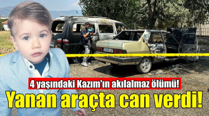 Her iki araçtaki alevler itfaiye ekipleri tarafından söndürülürken, yanan otomobildeki 4 yaşındaki Kazım Yılmaz'ın cansız bedenine ulaşıldı. Talihsiz çocuğun cansız bedeni, polis ve Cumhuriyet savcısının olay yerindeki incelemesinin ardından otopsi için İzmir Adli Tıp Kurumu'na kaldırıldı. Küçük Kazım'ın kolunu incittiği için kendisini hastaneye götürecek olan babasını beklediği sırada otomobilde yangının çıktığı öğrenildi.