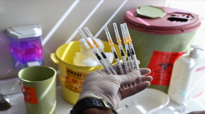 Aşı uygulamalarının yapıldığı sağlık merkezlerinden Bornova Türkan Özilhan Devlet Hastanesinde, günde 10 bin doz aşı yapılıyor. Boş aşı şişeleri, tıbbi atık kutularını dolduruyor.