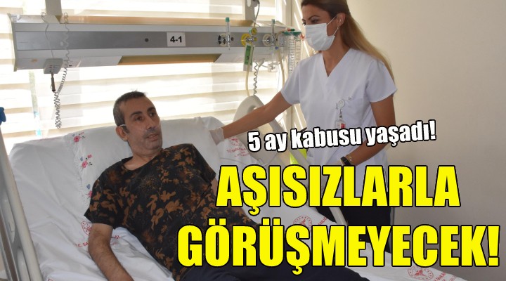 Erzurum Büyükşehir Belediyesi'nden emekli olduktan sonra Manisa'ya yerleşen Selim Yılmaz'ın hayatı, virüse yakalanması ile değişti. 5 aydır İzmir'deki hastane odasından çıkamayan Yılmaz, tedavisiyle ilgili ümitlerin kesildiği sırada hayata döndü. Taburcu olmak için gün sayan Yılmaz, hastaneden çıkınca ilk iş olarak memleketi Erzurum'a gideceğini ama aşı olmayan kişilerle görüşmeyeceğini söyledi.