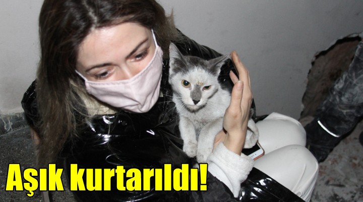 Kedi Aşık'ın 30 Ekim'deki depremden bu yana iki bina arasında yaşamasının imkansız olduğunu belirten Karşıyaka Belediyesi Veteriner İşleri Müdürü Çağlayan İnanlı, "Muhtemelen deprem sonrasında sokakta yaşamıştır. 4-5 gün önce evine dönmeye çalışırken iki bina arasına düştüğünü tahmin ediyoruz" dedi.