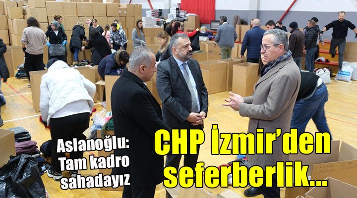 CHP'nin tüm örgütüyle, İzmir’in yardımlarının ulaştırılması için sahada olduğunu ifade eden CHP İzmir İl Başkanı Aslanoğlu, “Yaraların sarılması için tam kadro sahadayız. Bu afetin yol açtığı acıların üstesinden ancak dayanışmayla gelebiliriz. Yaraların sarılması en büyük önceliğimiz. Bu bağlamda İzmir büyükşehir belediyemiz ve ilçe belediyelerimiz olağanüstü bir çalışma yürütüyor. CHP İzmir il örgütü olarak da tüm kadrolarımızla sahada, yardım merkezlerinde, ilçe başkanlıklarımızda büyük bir mesai içindeyiz” dedi.